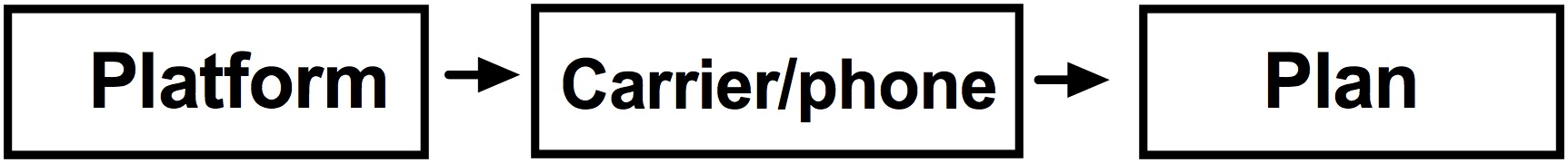 Now let’s flash forward five years, to 2009. Now there are some new players in town, and a new decision the customer has to make: what mobile OS do I use? iOS or Android? (Or Blackberry, I guess.) The customer has a totally different decision process to figure out what phone to buy: