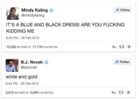 ‘mindy bjnovak’ Published February 27, 2015 at 520 × 379 in IT’S WHITE AND GOLD NO IT’S BLUE AND BLACK ‹ Return to post Leave a Reply Cancel reply Enter your comment here... Fill in your details below or click an icon to log in: Email (required) (Address never made public) Name (required) Website You are commenting using your WordPress.com account. ( Log Out / Change ) You are commenting using your Google account. ( Log Out / Change ) You are commenting using your Twitter account. ( Log Out / Change ) You are commenting using your Facebook account. ( Log Out / Change ) Cancel Connecting to %s Notify me of new comments via email. Notify me of new posts via email.