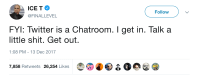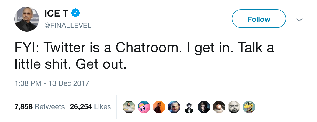 ‘ice t 2’ Published March 8, 2019 at 1228 × 472 in Why is twitter dot com, the hell website, so funny? ‹ Return to post Leave a Reply Cancel reply Enter your comment here... Fill in your details below or click an icon to log in: Email (required) (Address never made public) Name (required) Website You are commenting using your WordPress.com account. ( Log Out / Change ) You are commenting using your Google account. ( Log Out / Change ) You are commenting using your Twitter account. ( Log Out / Change ) You are commenting using your Facebook account. ( Log Out / Change ) Cancel Connecting to %s Notify me of new comments via email. Notify me of new posts via email.