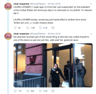 ‘laura-loomer-twitter-door’ Leave a Reply Cancel reply Enter your comment here... Fill in your details below or click an icon to log in: Email (required) (Address never made public) Name (required) Website You are commenting using your WordPress.com account. ( Log Out / Change ) You are commenting using your Google account. ( Log Out / Change ) You are commenting using your Twitter account. ( Log Out / Change ) You are commenting using your Facebook account. ( Log Out / Change ) Cancel Connecting to %s Notify me of new comments via email. Notify me of new posts via email.